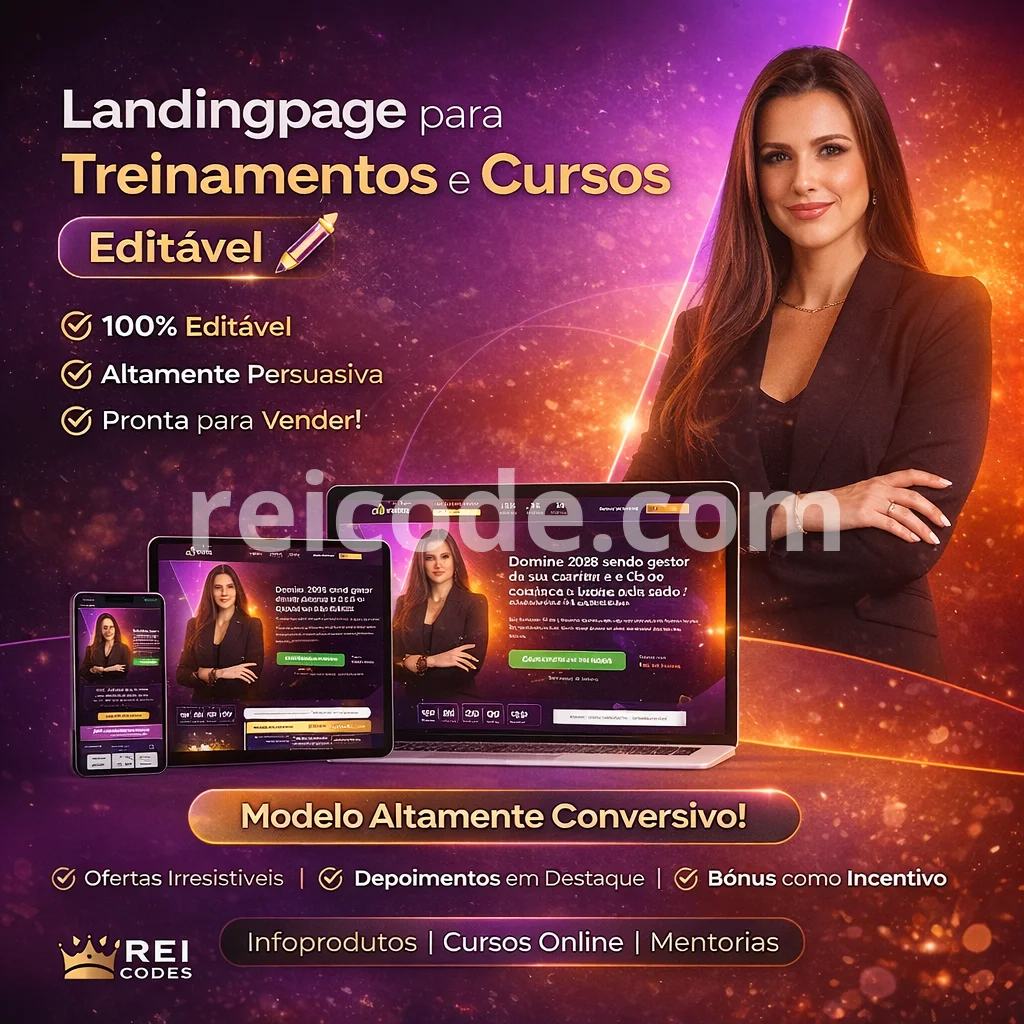 A Landing Page para Treinamentos e Cursos Editável 2026 é um modelo profissional em WordPress desenvolvido para maximizar conversões e vendas de infoprodutos, cursos online, mentorias e treinamentos presenciais.