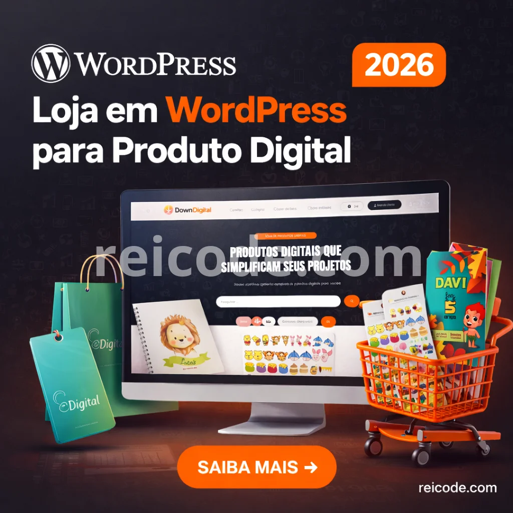 A Loja em WordPress para Produto Digital 2026 da reicode.com é a solução completa para quem deseja vender produtos digitais de forma profissional, automatizada e segura.