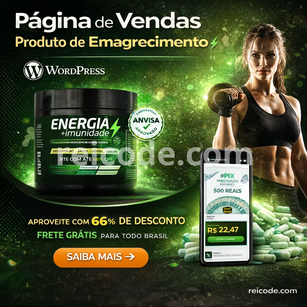 A Página de Vendas para Produto de Emagrecimento da reicode.com foi desenvolvida para maximizar conversões e destacar os benefícios do seu produto de forma estratégica e profissional.