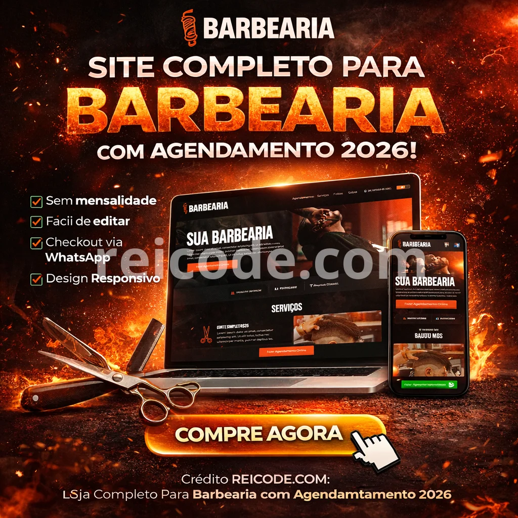O Site Completo Para Barbearia com Agendamento 2026, desenvolvido pela reicode.com, é a solução ideal para barbearias que desejam se destacar no mercado e facilitar o agendamento de clientes pela internet.