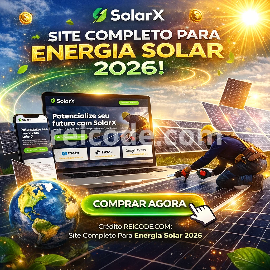 O Site Completo Para Energia Solar 2026 é a solução ideal para empresas e instaladores que atuam no setor de energia solar e desejam se posicionar com autoridade no mercado.