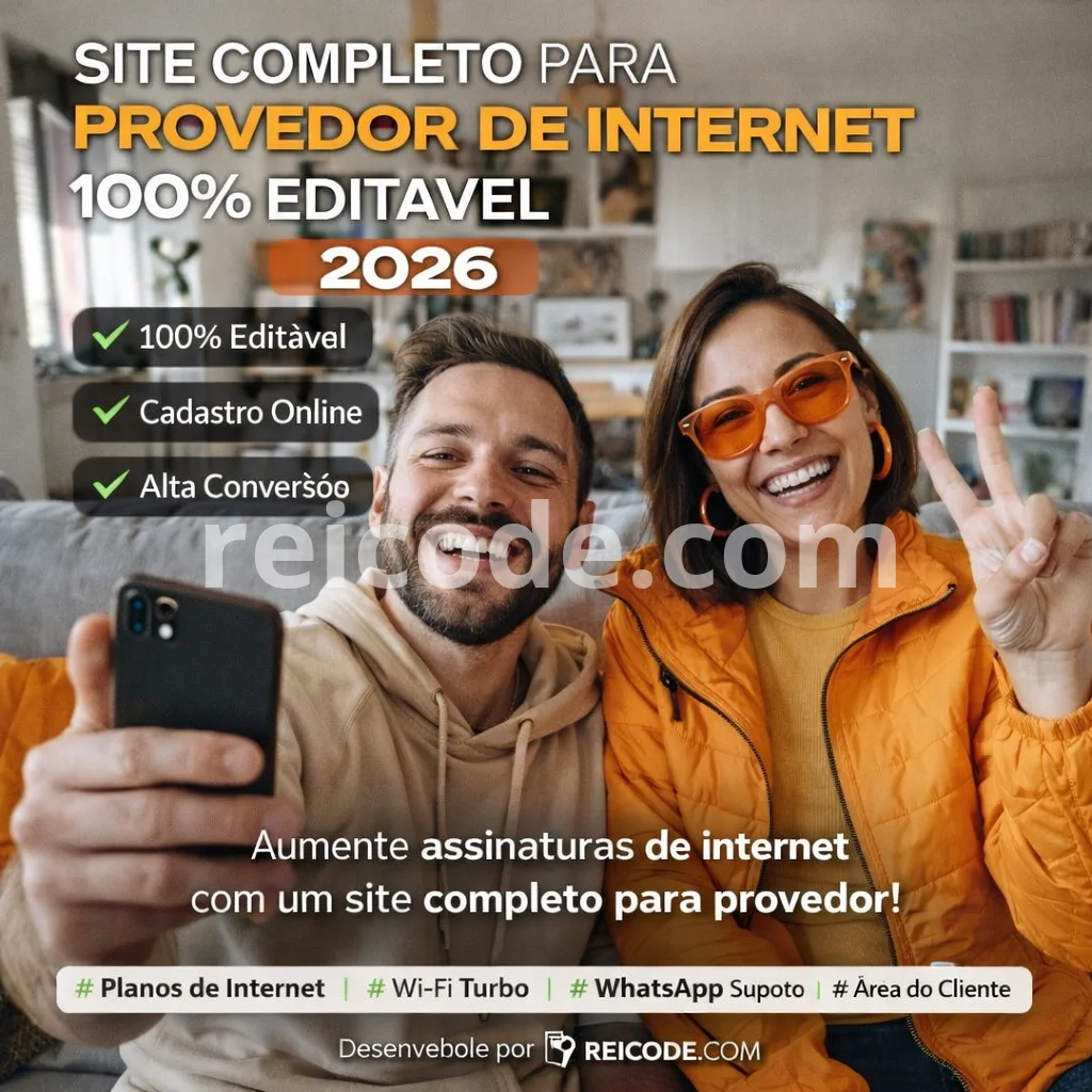 O Site Completo para Provedor de Internet Editável 2026 é a solução ideal para empresas de fibra óptica, banda larga e Wi-Fi que desejam aumentar assinaturas e fortalecer sua presença digital.