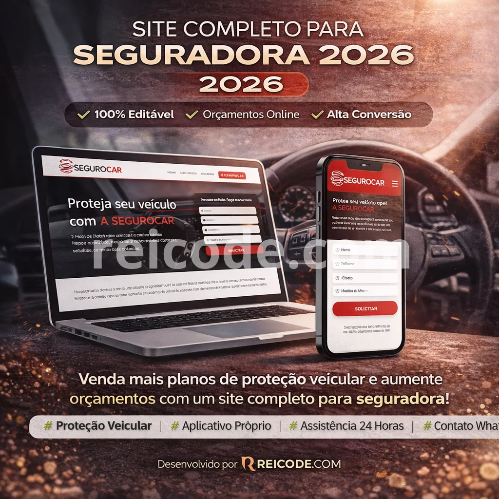 O Site Completo para Seguradora Editável 2026 é a solução ideal para empresas de proteção veicular, seguradoras e associações automotivas que desejam aumentar suas cotações online e fechar mais contratos.
