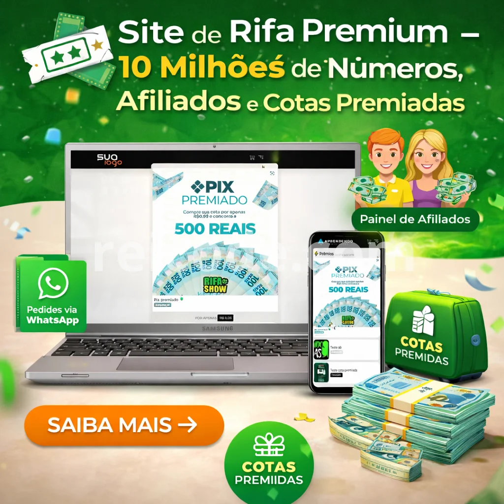 Este script é a escolha ideal para empreendedores digitais, organizações de caridade, clubes e qualquer um que deseje organizar uma rifa online de forma profissional e eficiente. Com ele, você não apenas oferece uma experiência de compra segura e agradável para seus clientes, mas também maximiza seus lucros através de um sistema de afiliados e cotas premiadas. Não perca a oportunidade de levar seu negócio a novos patamares. Adquira hoje mesmo o Script Rifa Premium PHP Puro – 10 Milhões de Números, com sistema de Afiliados e Cotas Premiadas e transforme a forma como você realiza rifas online. Para mais informações e para adquirir o script, entre em contato conosco. Estamos ansiosos para ajudá-lo a alcançar o sucesso com a sua rifa online! Destaques dos Nossos Modelos de Site de Rifas em PHP :