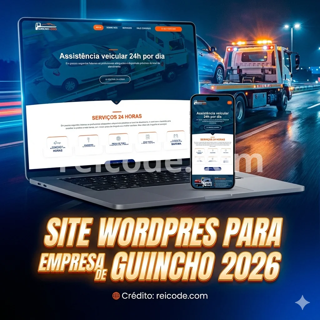 Quando um cliente precisa de um guincho, ele tem pressa. A Landing Page para Guincho 2026 da Reicode foi projetada com base na experiência do usuário em situações de emergência. O layout prioriza a informação mais importante: o contato imediato.