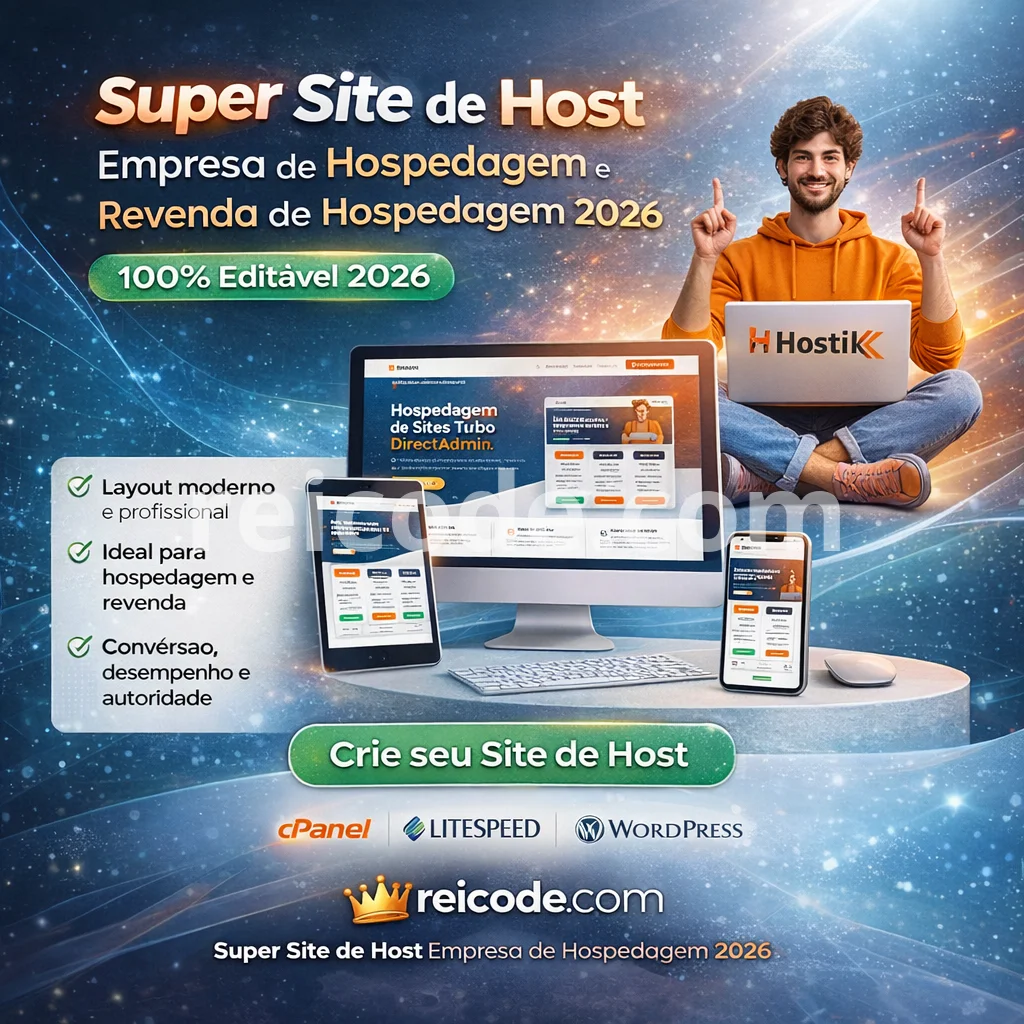 Apresente sua empresa de hosting com força, autoridade e visual profissional com o Super Site de Host – Empresa de Hospedagem e Revenda de Hospedagem 2026.