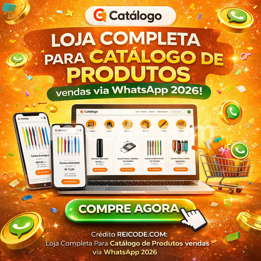 Apresente seu negócio de forma moderna, estratégica e profissional com o Template Loja Completa para Catálogo Digital WhatsApp 2026, desenvolvido pela reicode.com.
