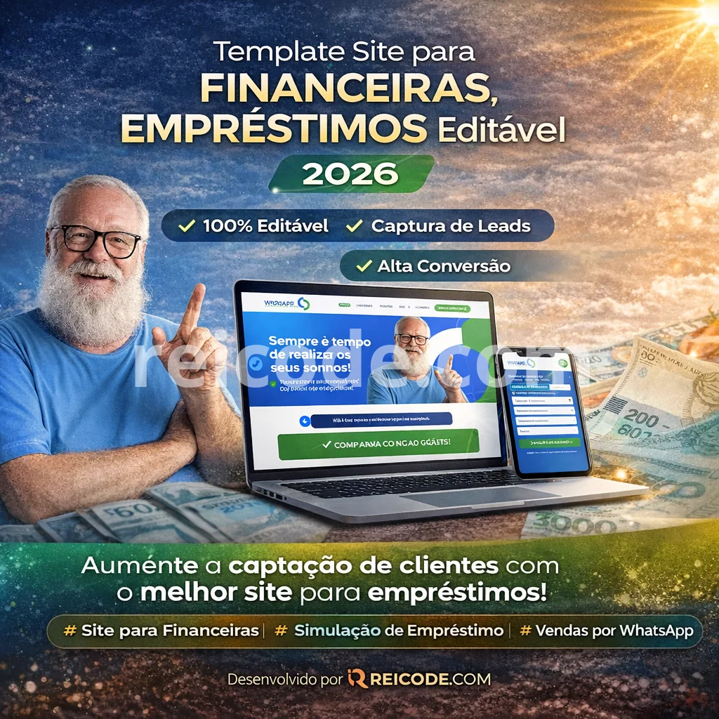 O Template Site para Financeiras e Empréstimos 2026 foi desenvolvido especialmente para financeiras, correspondentes bancários e empresas de crédito que desejam aumentar a captação de clientes pela internet.