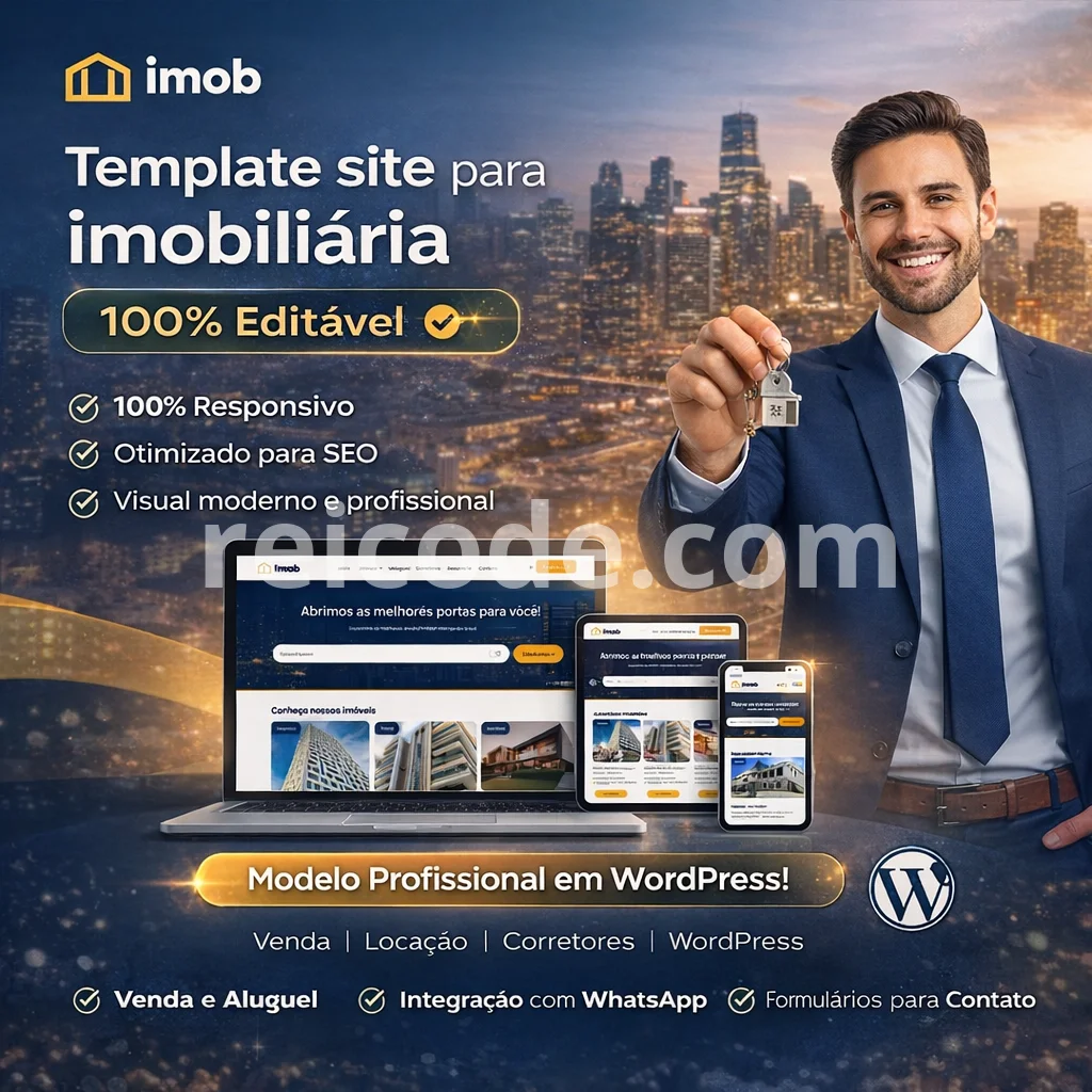 O Template Site para Imobiliária 100% Editável 2026 foi desenvolvido para corretores, imobiliárias e empresas do mercado imobiliário que desejam um site moderno, profissional e preparado para gerar leads todos os dias.